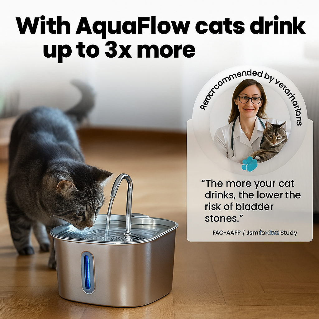 Make hydration a daily delight. With AquaFlow Pure, cats drink up to 3× more, supporting healthy kidneys and bladder — for a happier, healthier life every day.