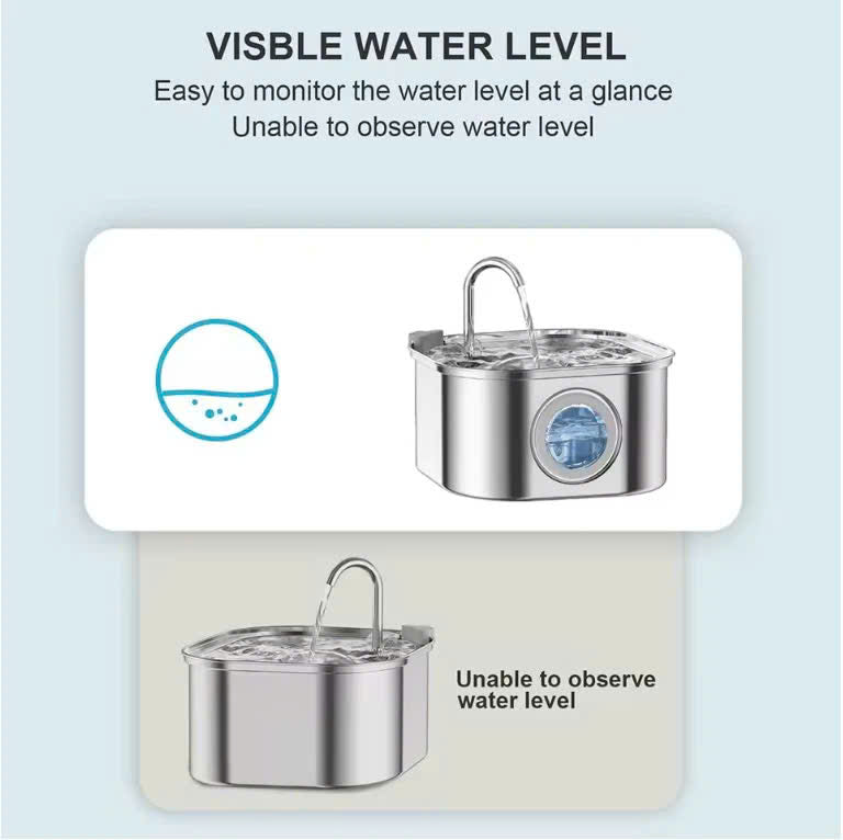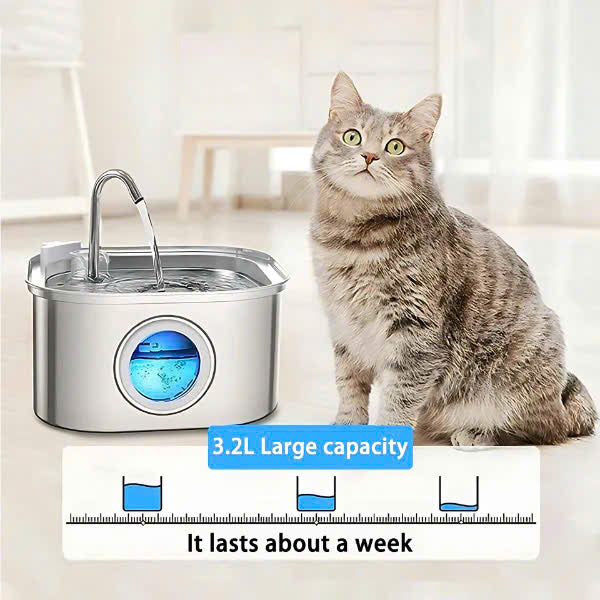 Designed for multi-pet households, this 3.2L stainless steel water fountain ensures your pets stay hydrated all day. The large see-through eye design lets you easily monitor water levels, while the SUS 304 material guarantees safety, durability, and a clean, refreshing drink every time
